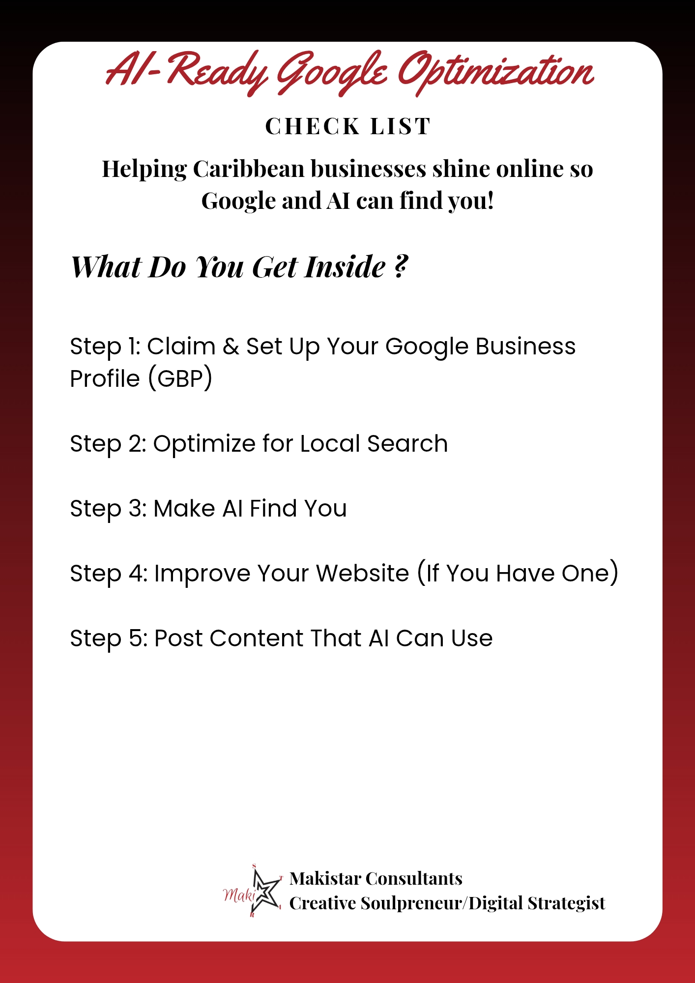 Tired of posting great content that no one sees? The AI-Ready Google Optimization Checklist helps busy women, creatives, and fempreneurs make their content visible, searchable, and profitable — without the tech overwhelm.